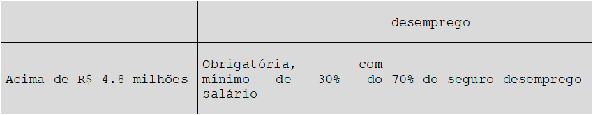 A empresa que tiver auferido, no ano-calendário de 2019, receita bruta superior a R$ 4.800.000,00 (quatro milhões e oitocentos mil reais), somente poderá suspender o contrato de trabalho de seus empregados mediante o pagamento de ajuda compensatória mensal no valor de trinta por cento do valor do salário do empregado, durante o período da suspensão temporária de trabalho pactuado, observado o disposto no caput e no art. 9º.